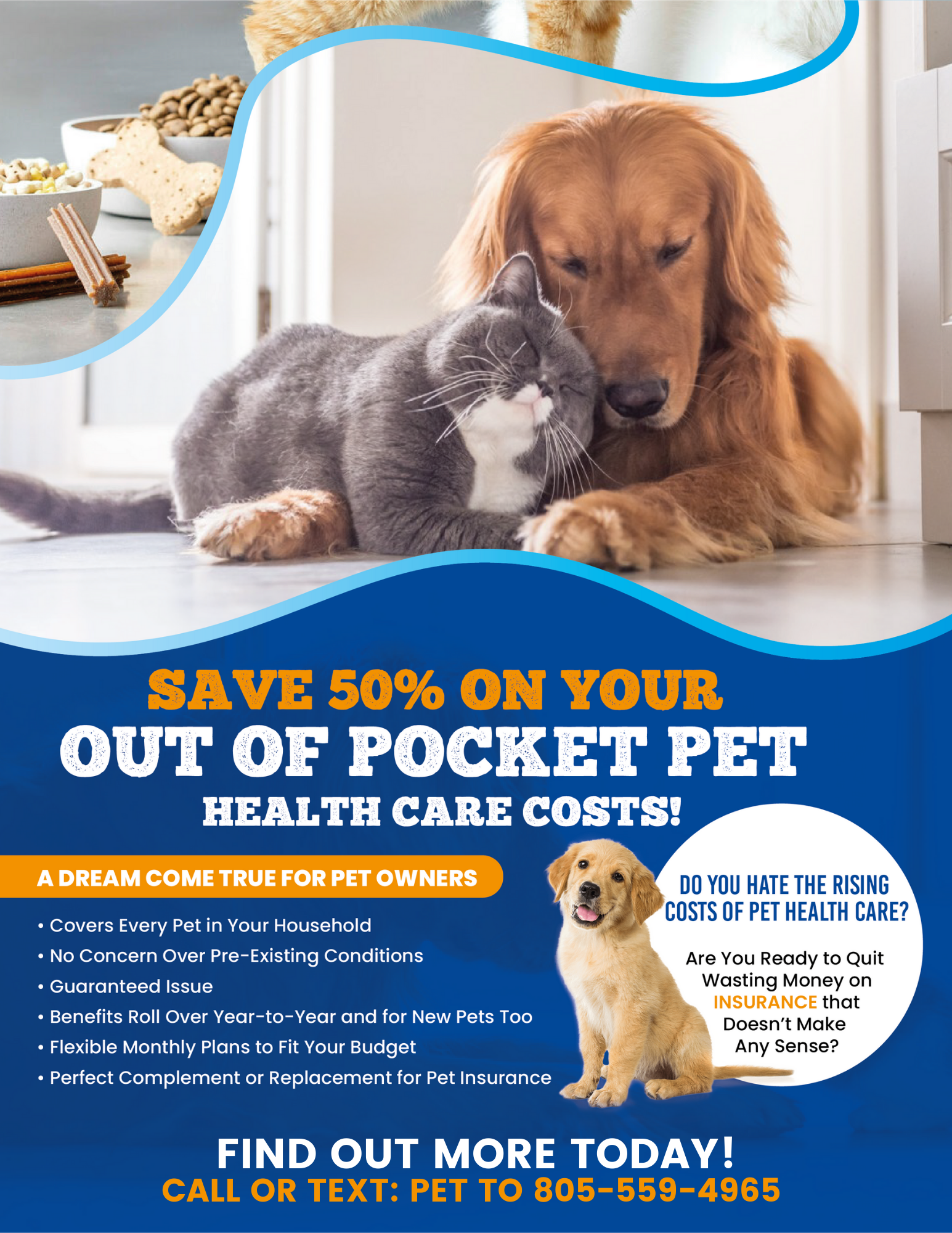 Schedule an appointment and learn how you can save 50% on your out of pocket pet health care costs with one of our associates!